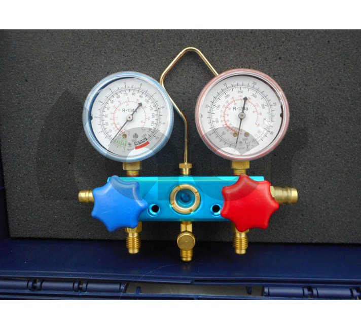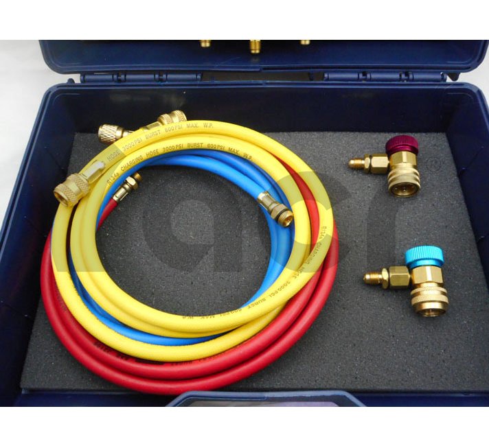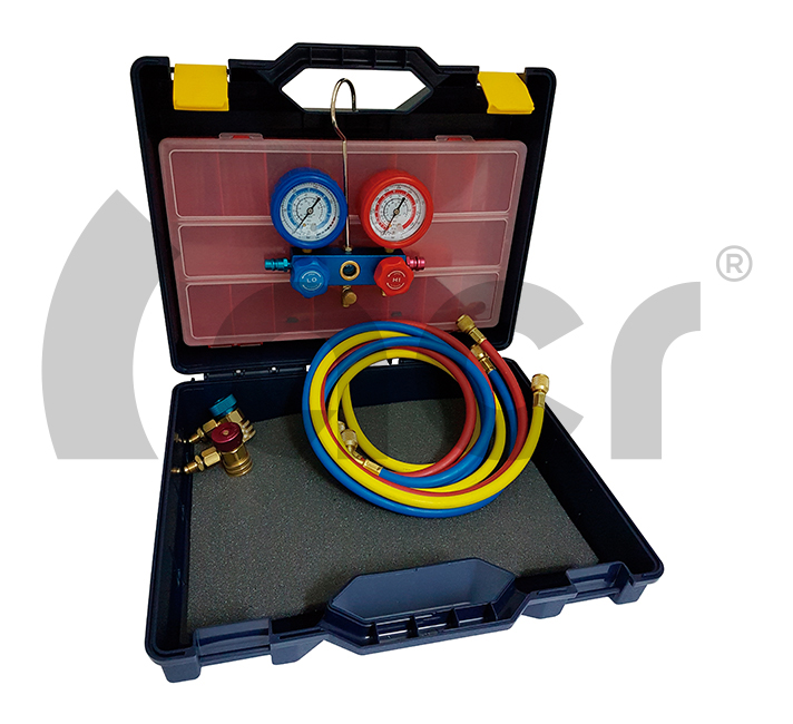 KIT ANALIZADOR 2 VIAS + JUEGO MANGUERAS 150CM Y ENCHUFES R134A